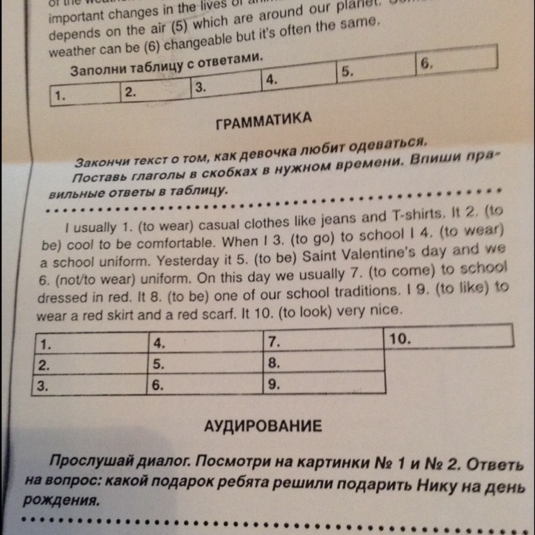 1. Wear. 2. Is. 3. Go.4. Wear. 5.was. 6. Didn't wear. 7.come. 8.is. 9. Like. 10.looks