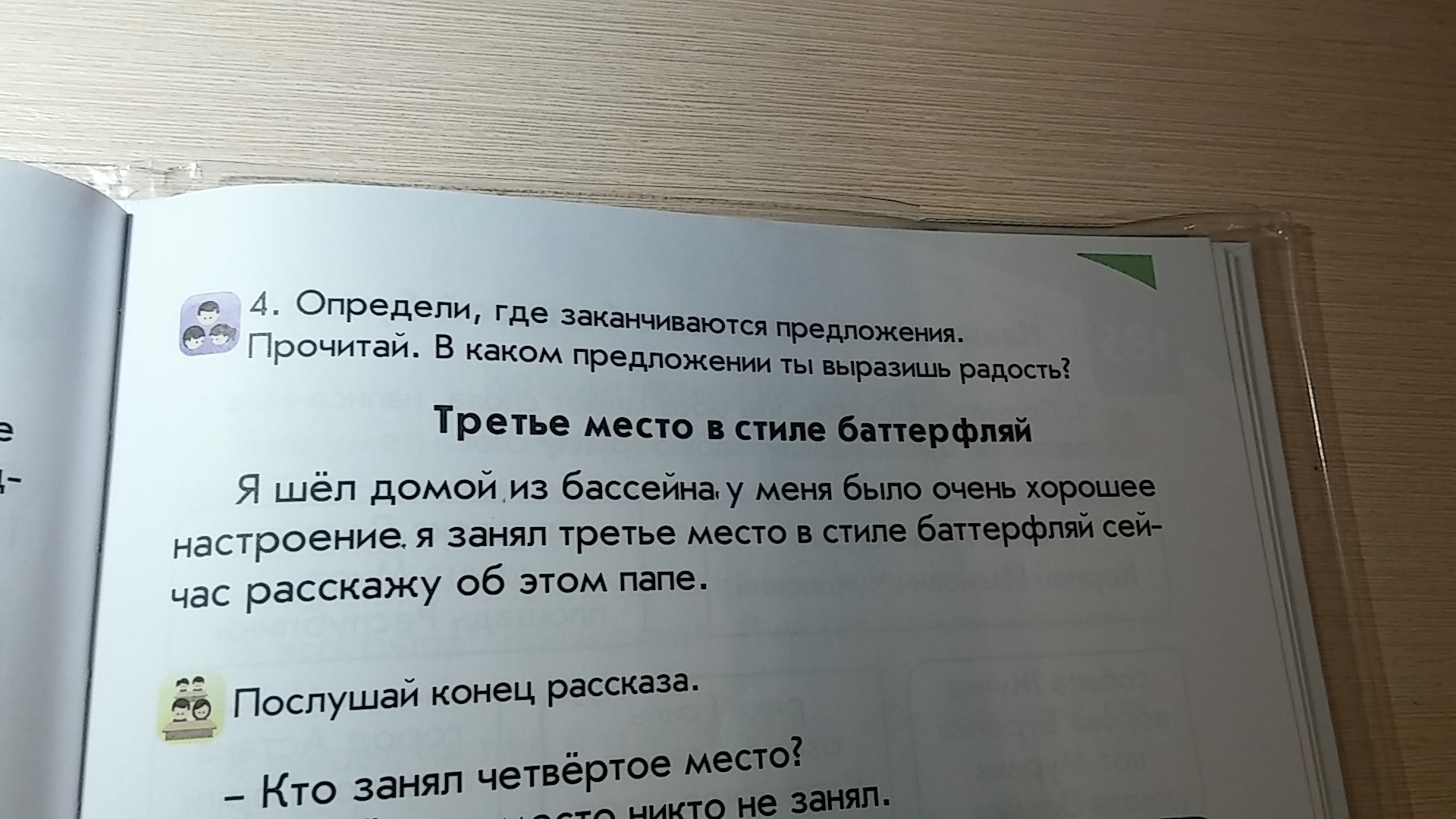 я шёл домой из бассейна.У меня было очень хорошее настроение.Я занял третье место в стиле баттерфляй.Сейчас расскажу об этом папы.