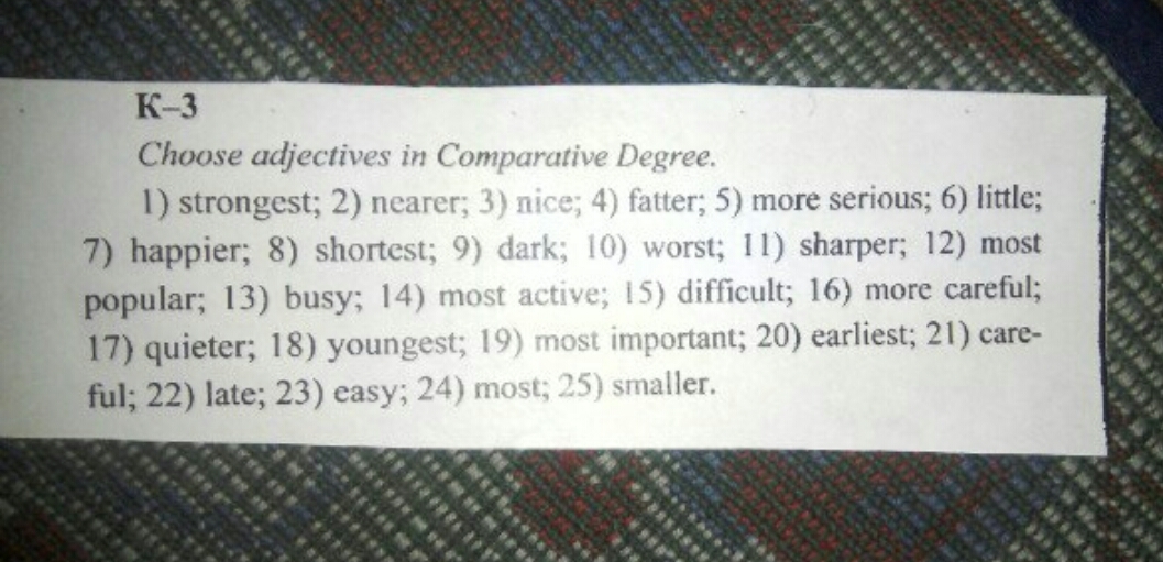 2,4,5,7,11,16,17,25. Comparative - сравнительная степень, как в русском