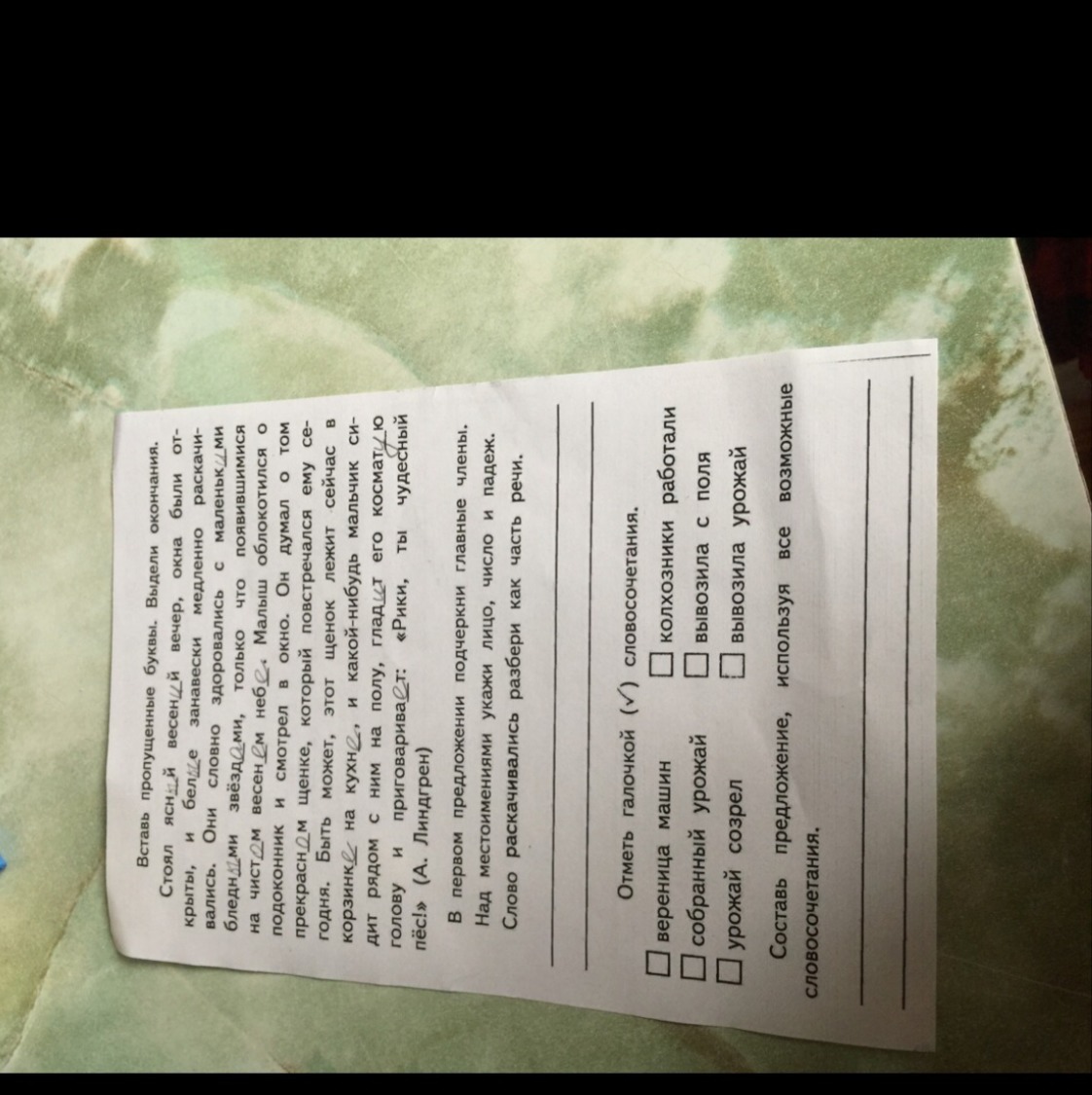 Помогите пожалуйста решить отметь галочкой словосочетание Составь предложения используя все возможные словосочетания