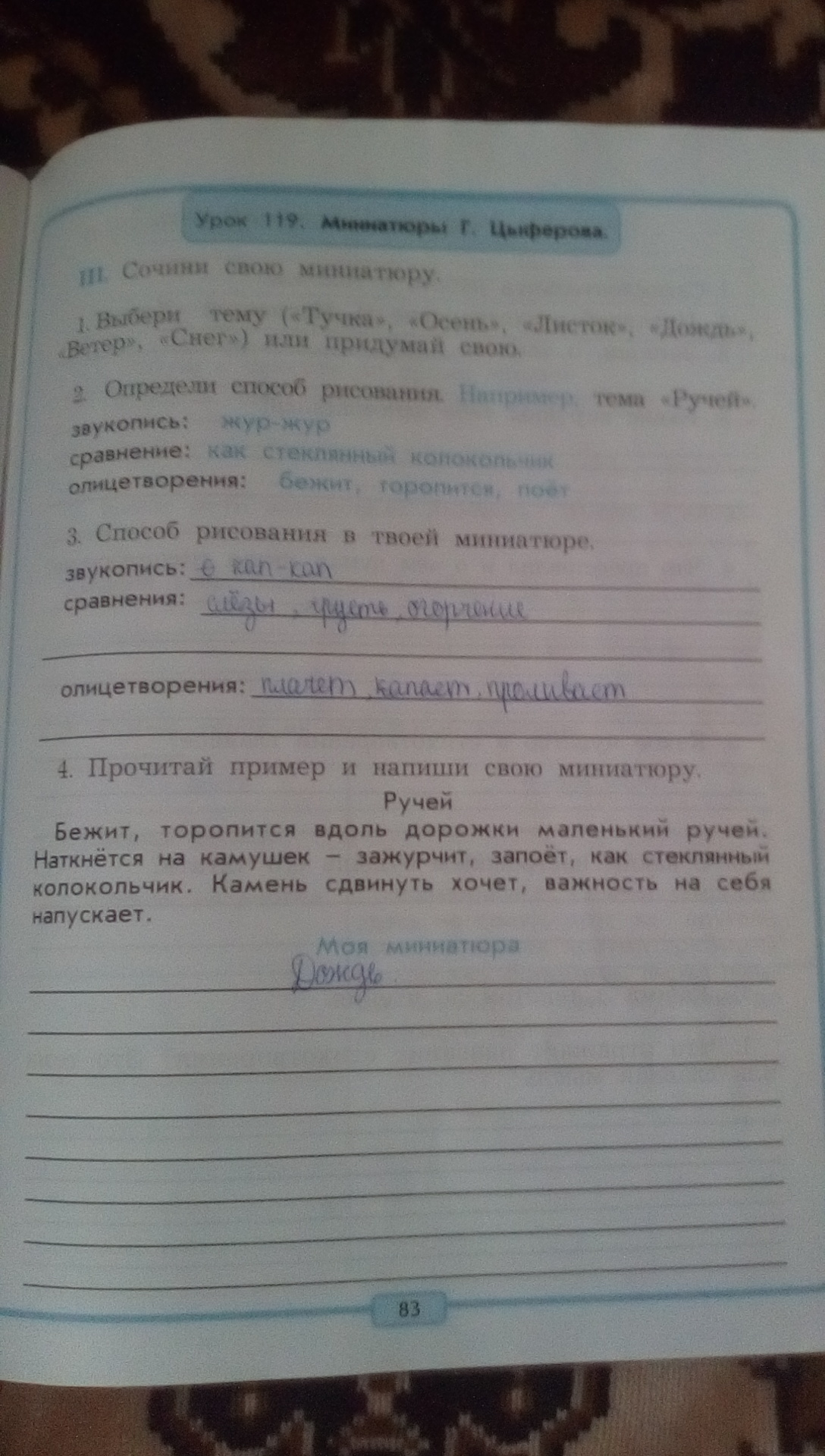 помогите пожалуйста по этим словам,которые записывала я составить миниатюру. образец на фото. заранее спасибо