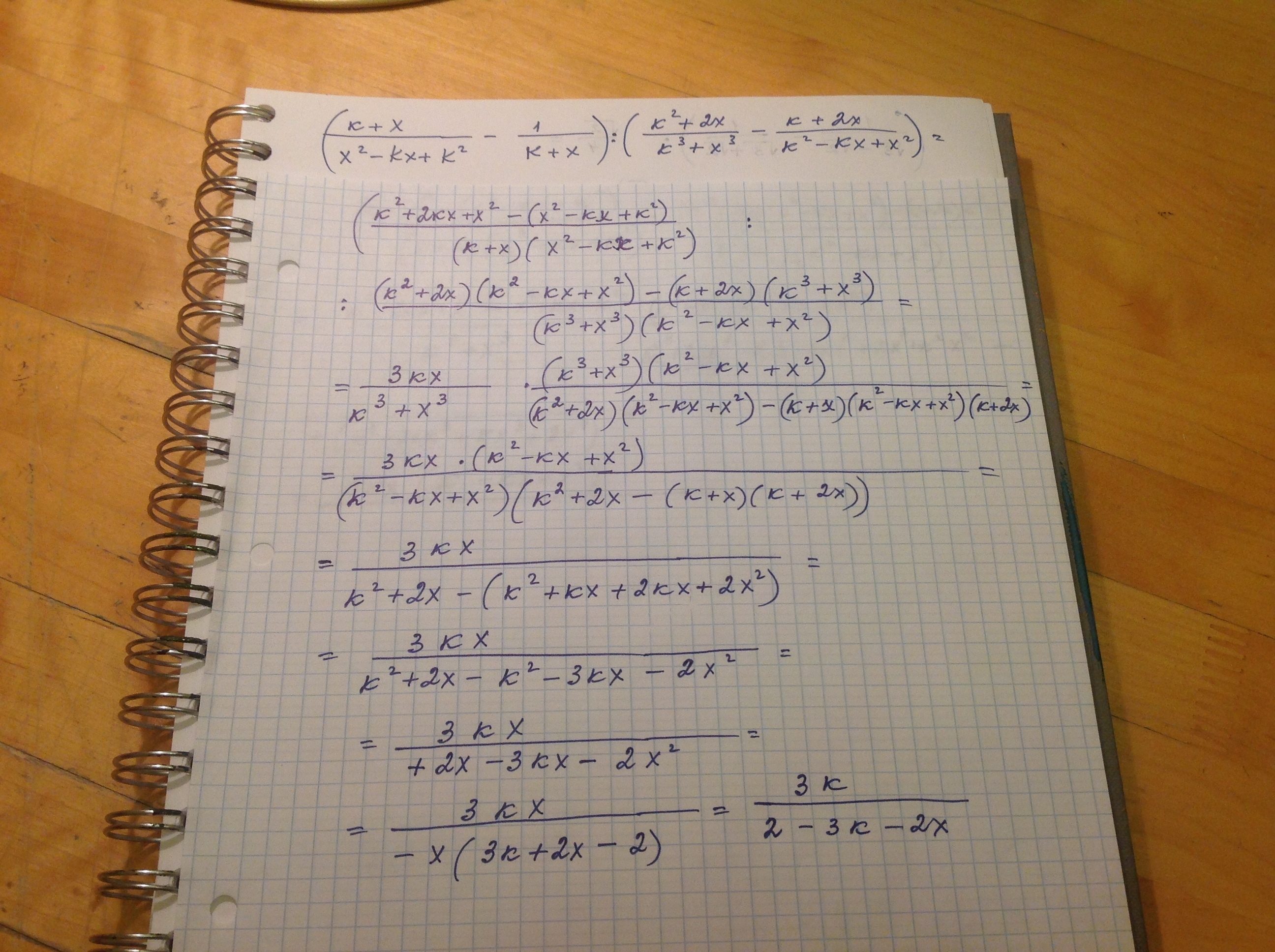 (k+x/x²-kx+k² - 1/k+x) : (k²+2x/k³+x³ - k+2x/k²-kx+x²)