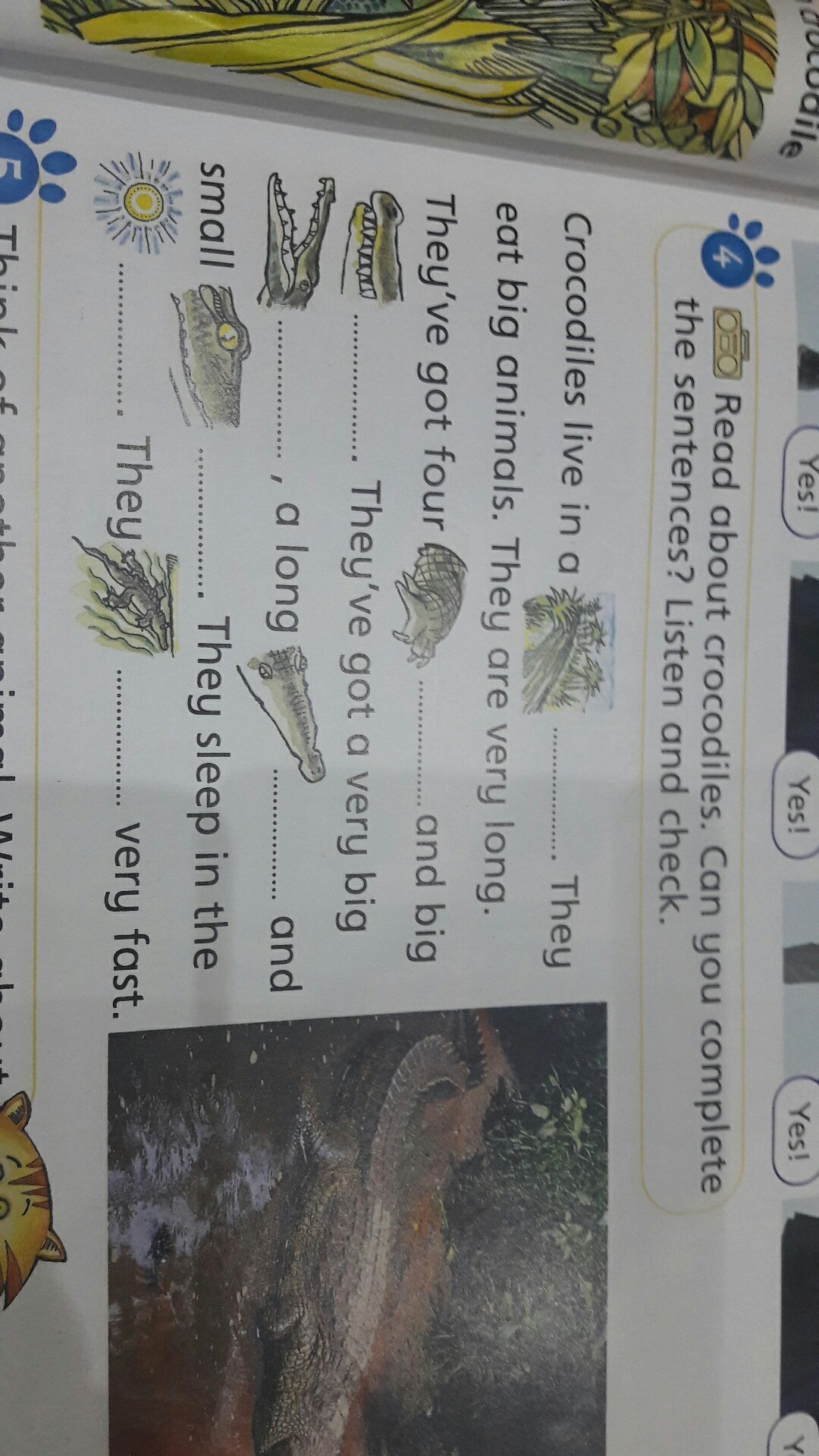 Jungli, arm, mouth, tooth, nose, eas, sun, swim.