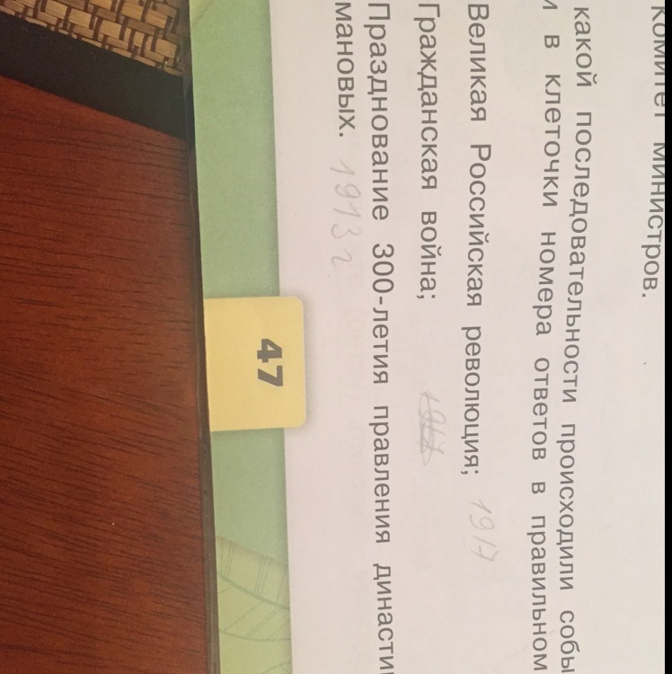 В какой последовательности происходит события? Вписать в клеточки номера ответов в правильном порядке. Великая Российская революция. Гражданская война.