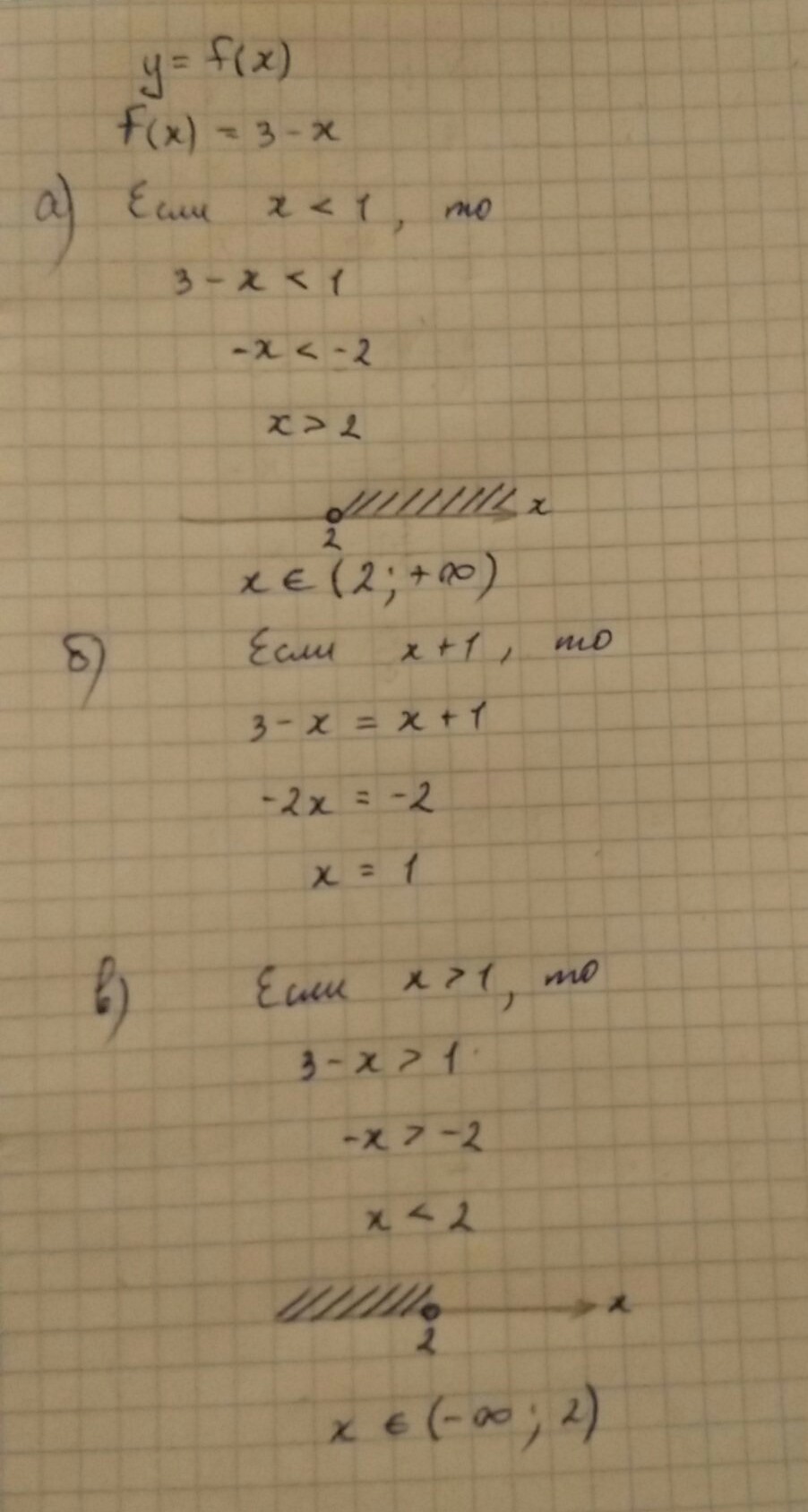 дана функция y=f(x), где f(x)=3-x, если x меньше 1, x+1, если x больше 1. Вычислите а) f(1), б) f(-2)