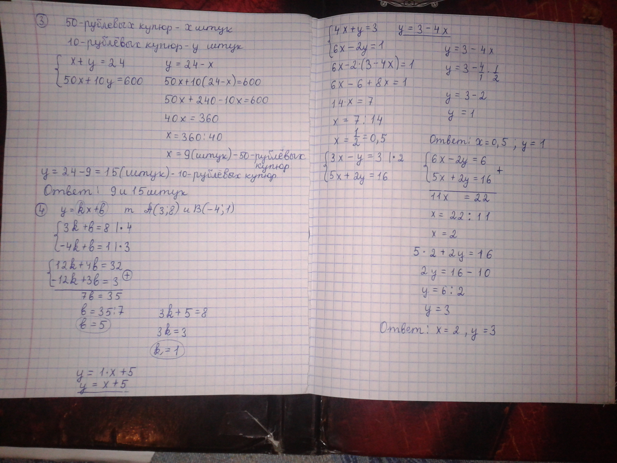 B(-4;1) тоже х=-4, а у= 1 и так же подставляем и получается 1=-4K+B