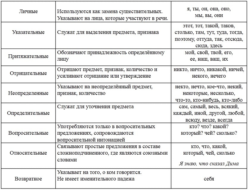 т.е смотришь, из 3 колонки (например,местоимение МЕНЯ ищешь его разряд ) и т.д