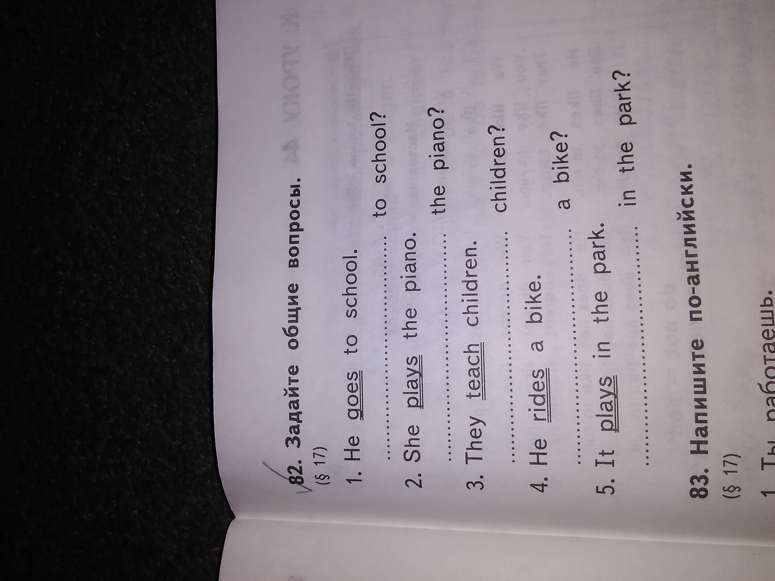81. 2.Do they write ? 3.Does he read? 4.Does she read? 5.Do they sing?