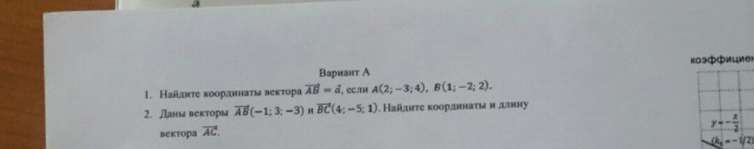№1 Координаты вектора равны разностям одноимённых координат конца и начала вектора . 1-2=-1; -2+3=1; 2-4=-2. Ответ (-1;1;-2)