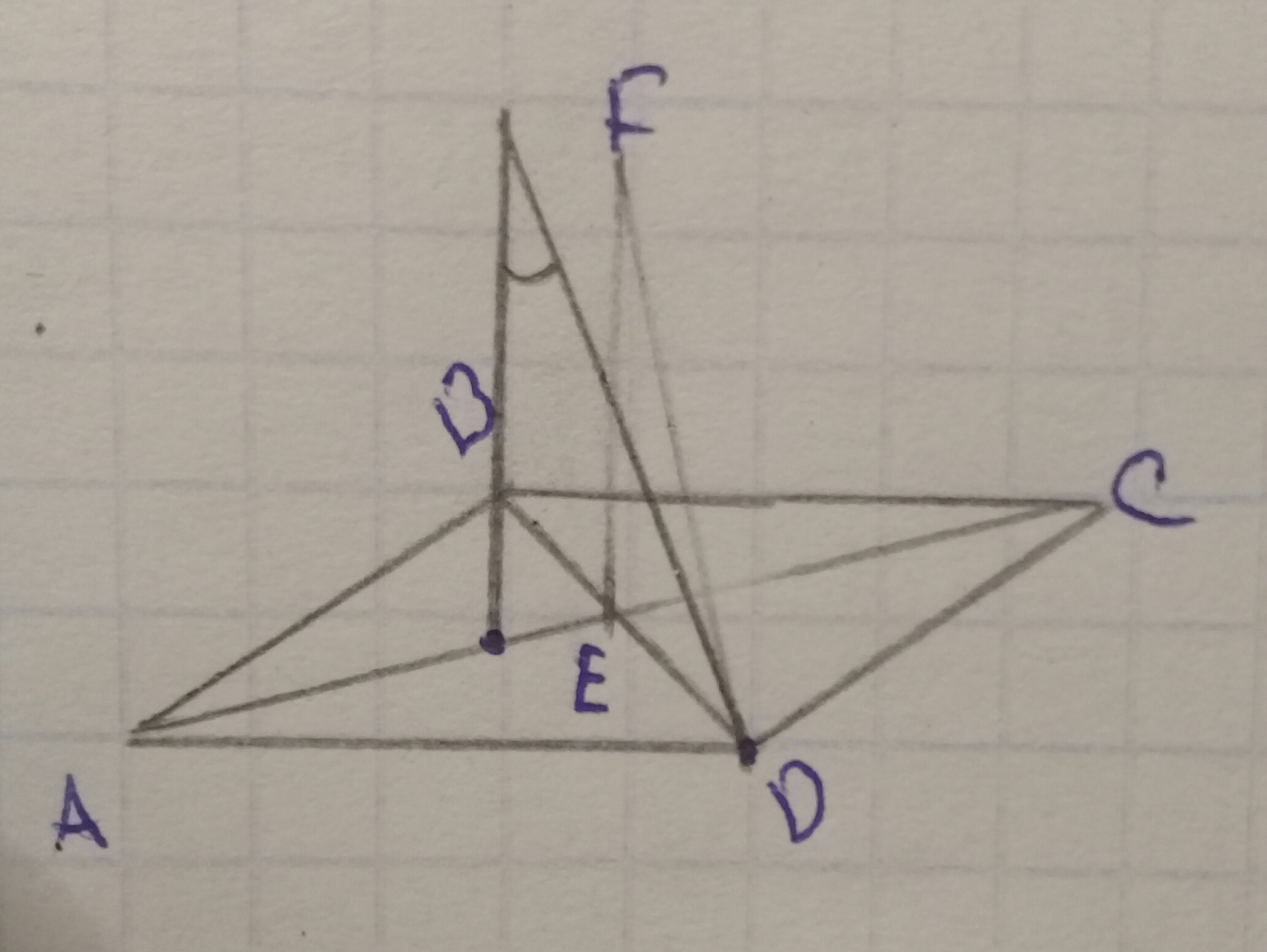 Диоганаль AC квадрата ABCD равна 20см. Из точки E(AE=5 см) этой диоганали проведён к его плоскости перпендикуляр EF, длинна которого равна 5корень (3) см. Вычислите градусную меру угла наклона прямой FD к плоскости AFC.