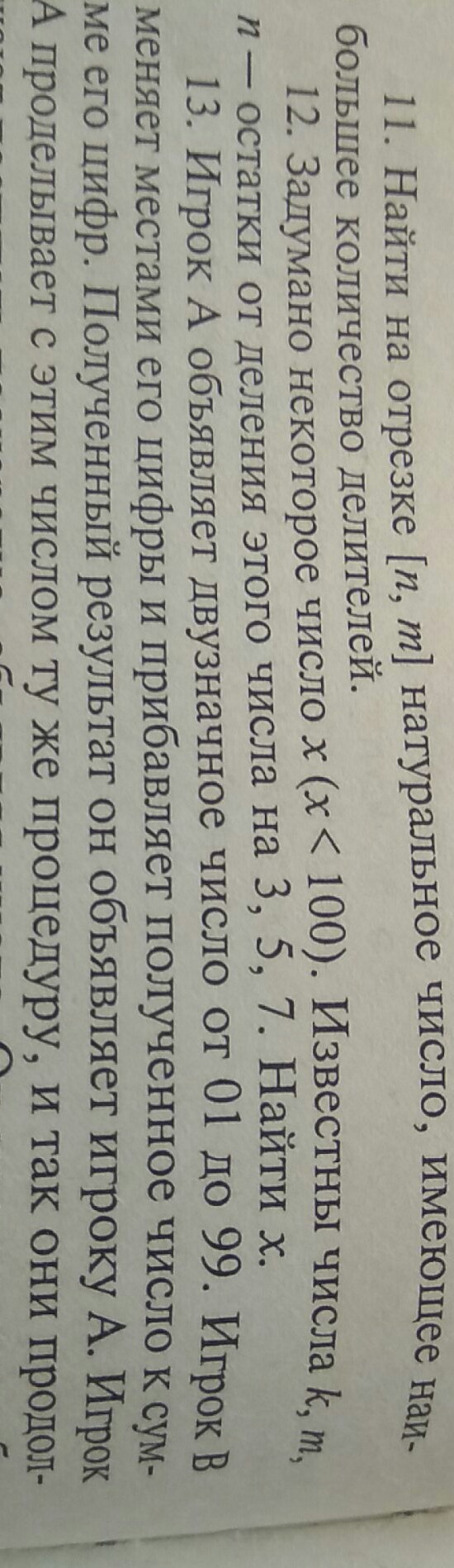 cout << "x = " << (70*k + m*21 +n*15) % 105;