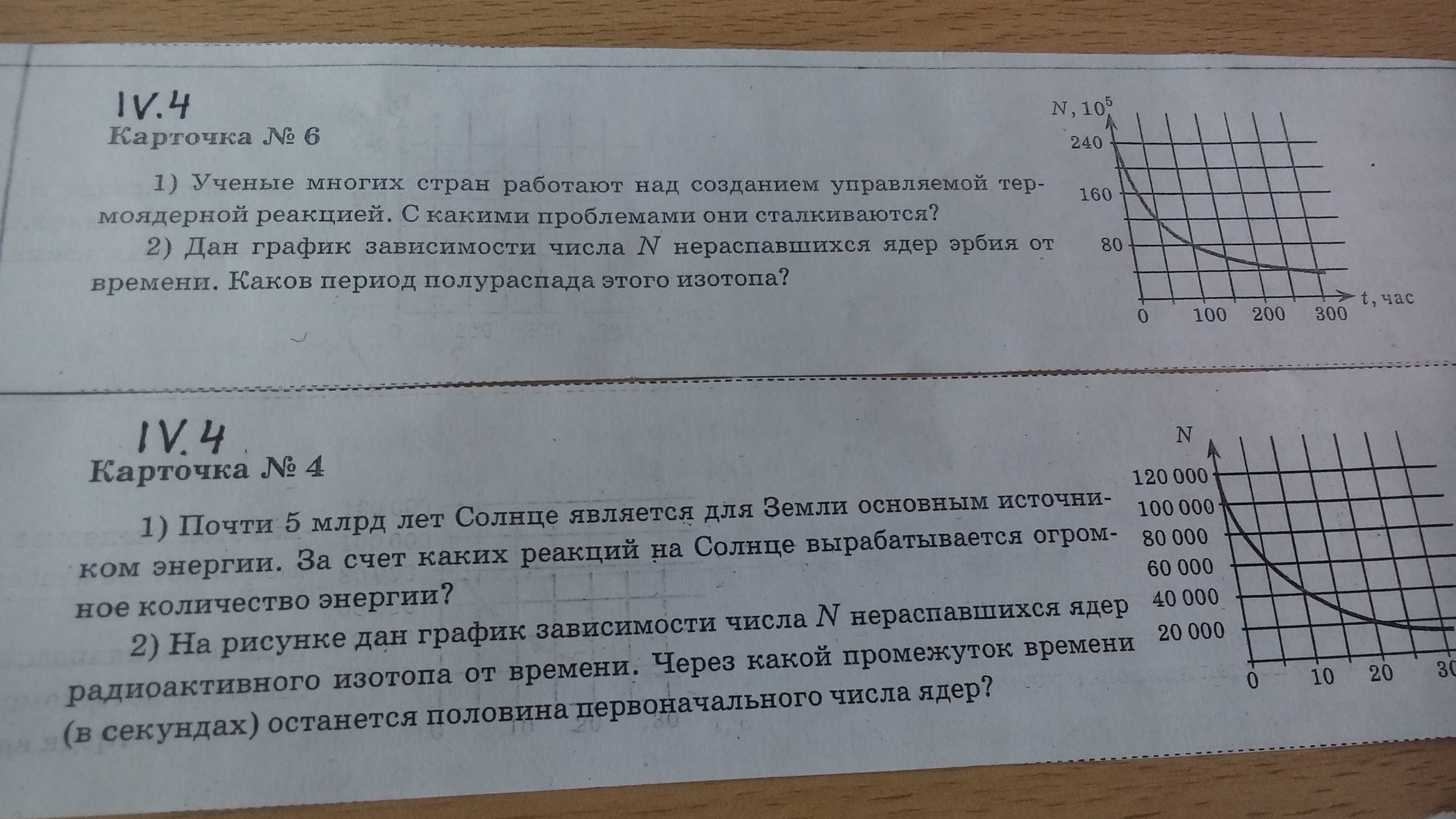 2) Период полураспада равен времени распада половина ядер от изначального количества ядер. На графике -это при N=120*10^5, а t=50 часов.