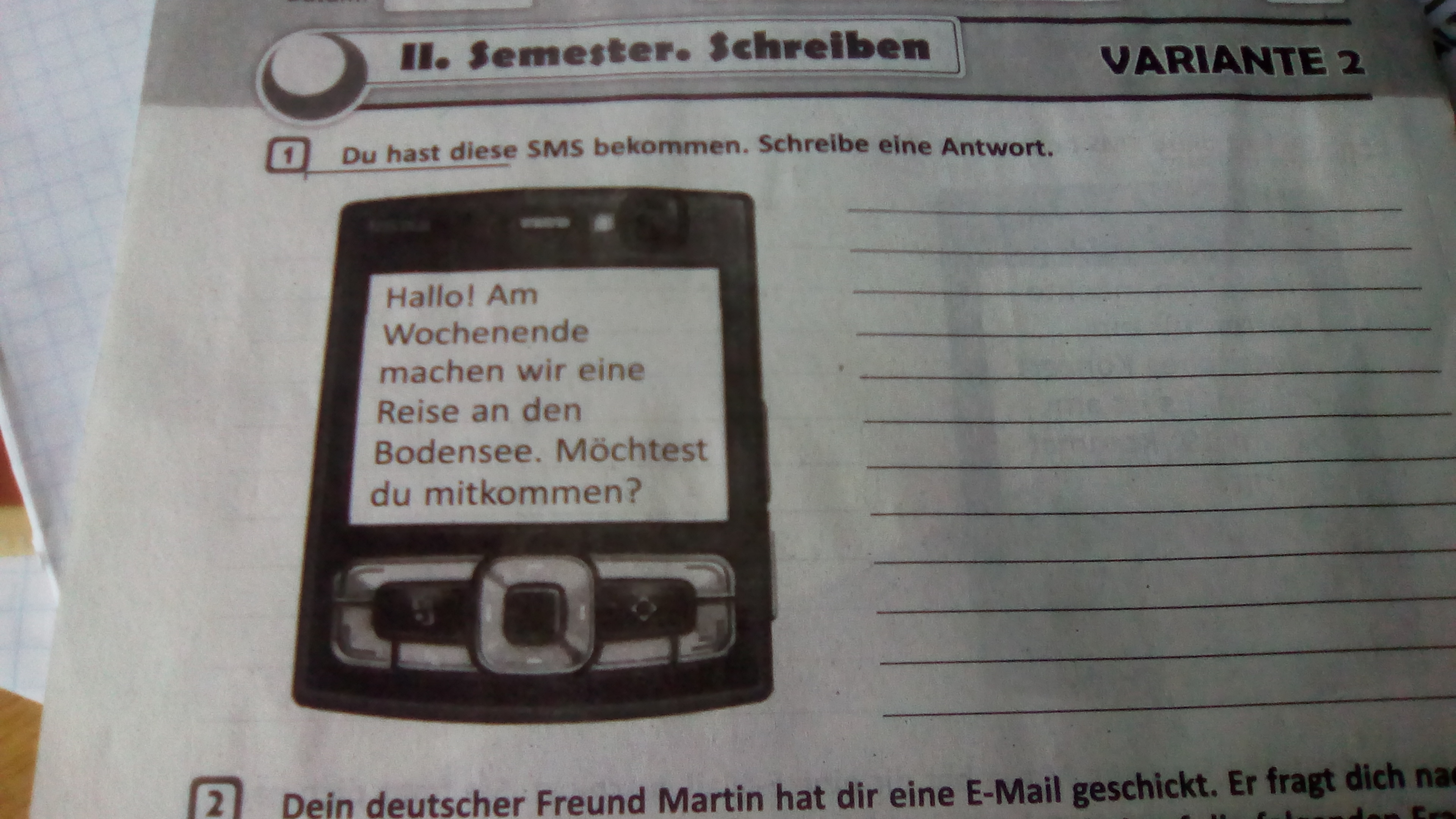 Hallo. Natürlich, ich will mitkommen. Ich war schon dort vor einem Monat . Was soll ich mitbringen? Werden wir mit dem Auto fahren? Wann und wo treffen wir uns ? Schreib mir die Antwort oder ruf mich an. Bis bald.