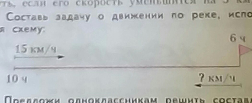 Катер двигался по реке со скоростью (15км/ч.). Лодка плыла 6 ч вперёд, а назад 10 ч. С какой скростью лодка плыла назад?