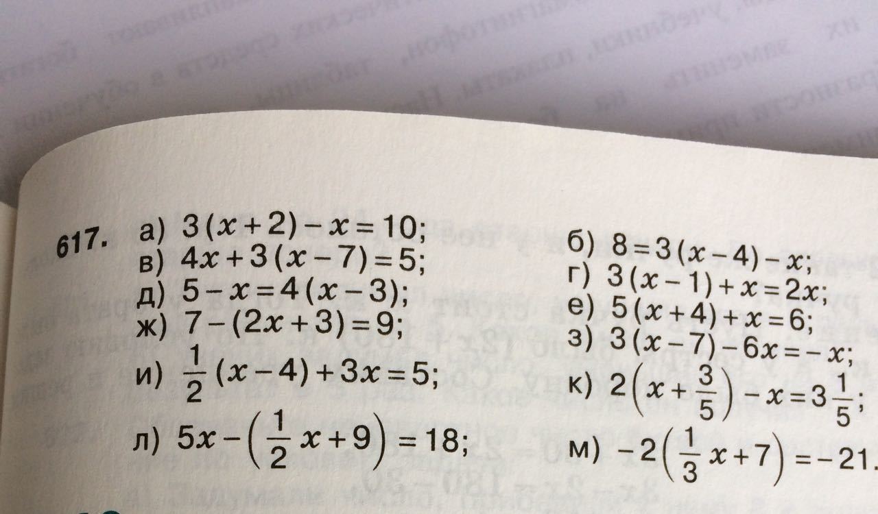 в) 4x+3x-21=5. 7x=26. x=3 4/7