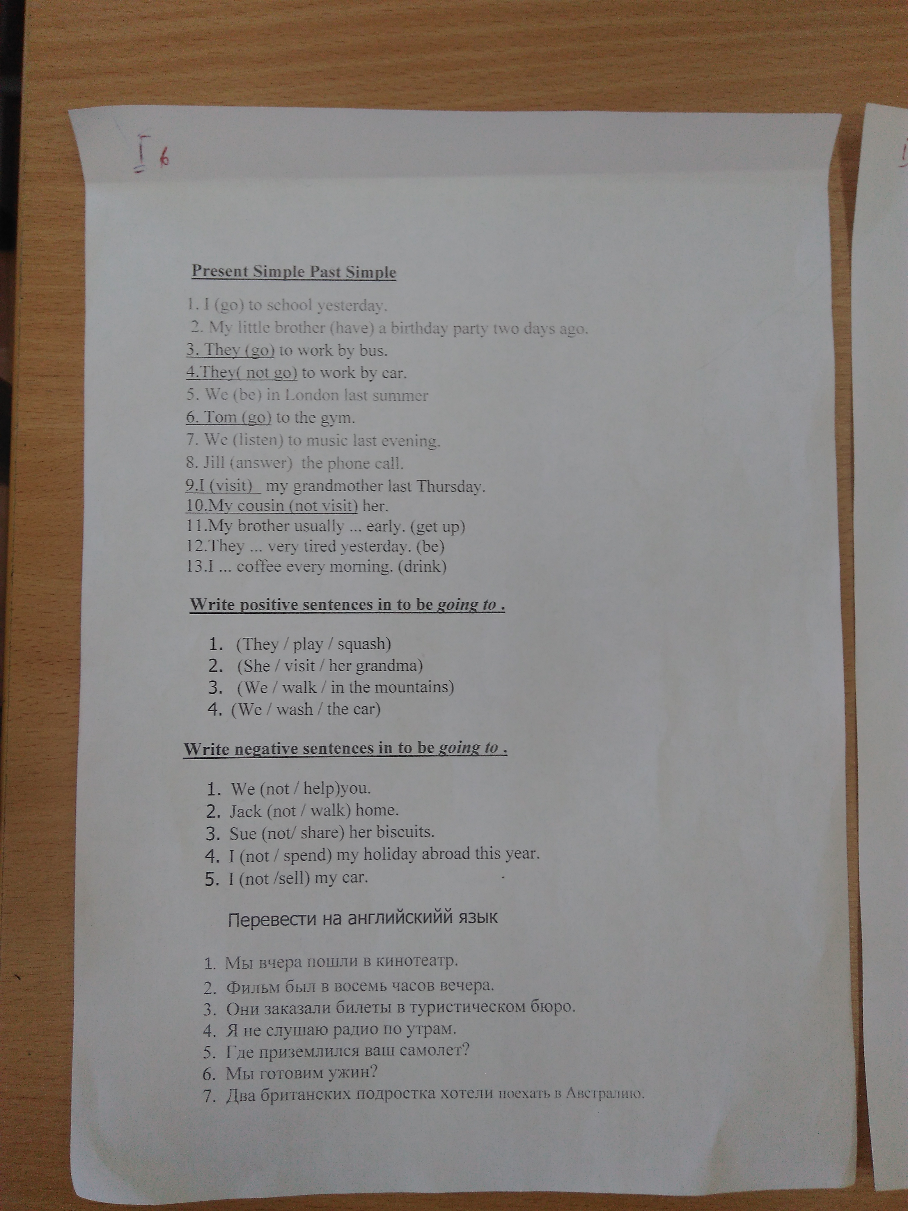 1. We went to the cinema yesterday