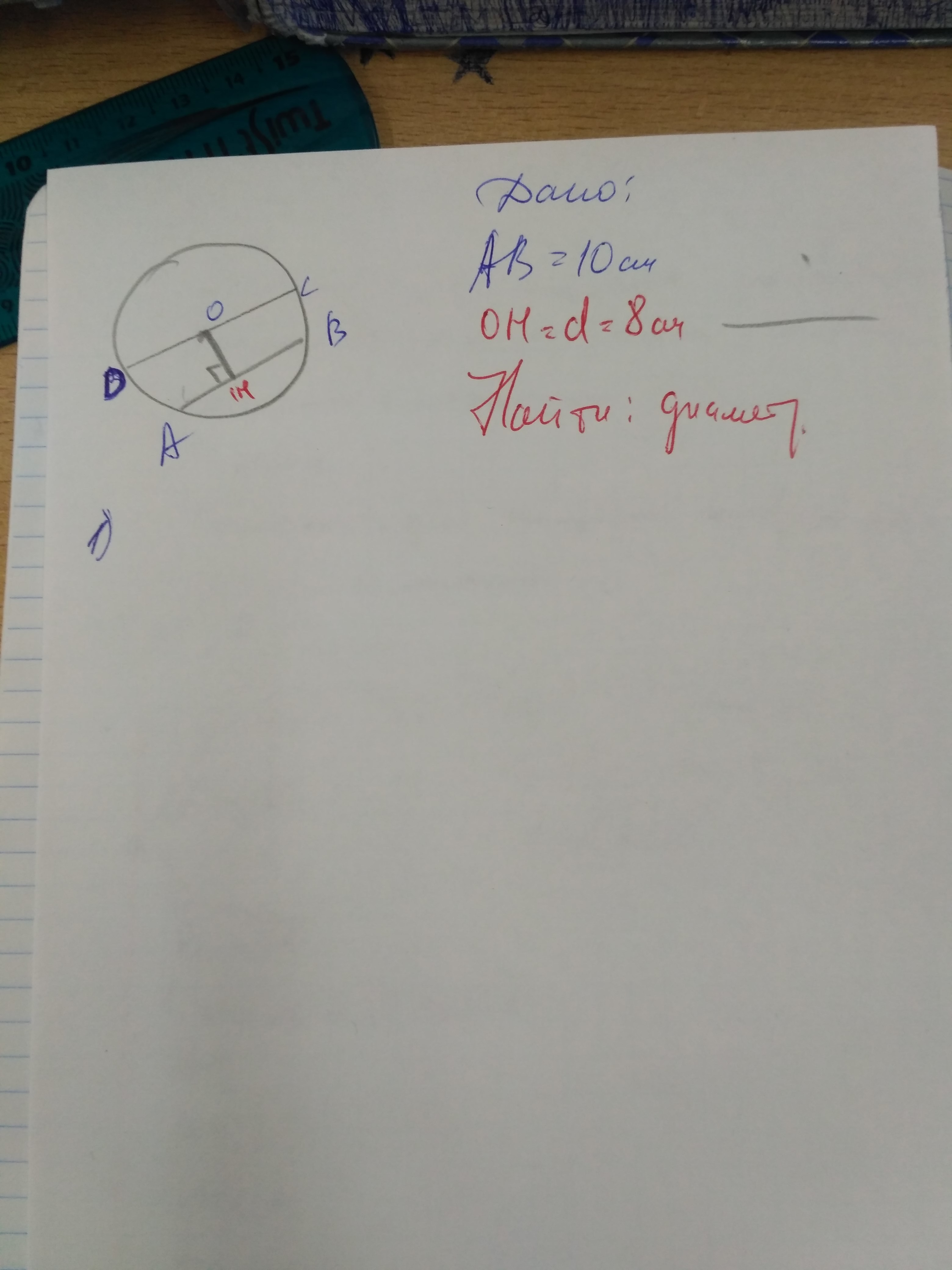 Для прямоугольного ΔАОН справедлива теорема Пифагора, с помощью которой найдём гипотенузу АО, которая является радиусом данной окружности.