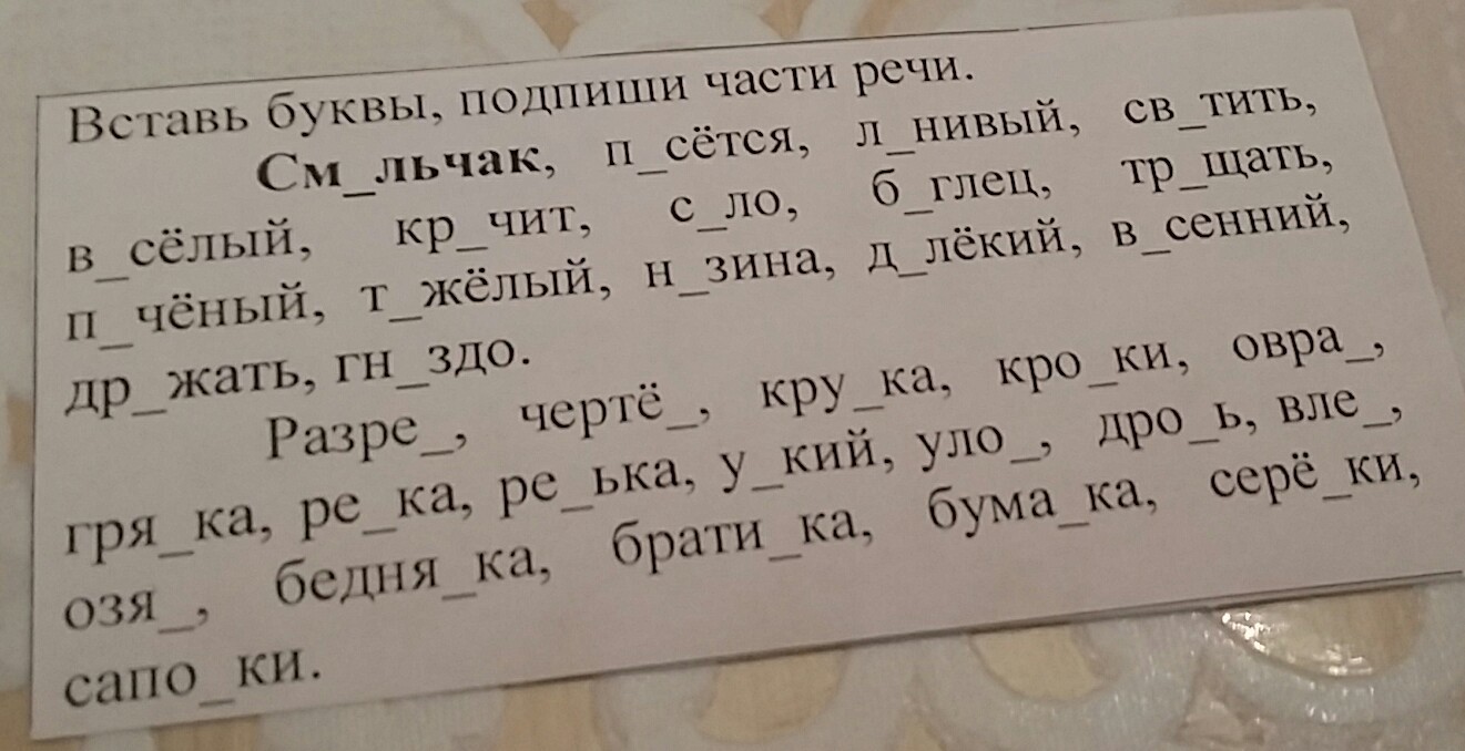 Смельчак пасется ленивый светить весёлый кричит село беглец трещать печеный тяжелый Низина далекий Весенний дружать гнездо разрез чертеж кружка крошки орач грядка Репка редька узкий улов дробь в влез озяд Бедняжка братишка бумажка сережки сапожки