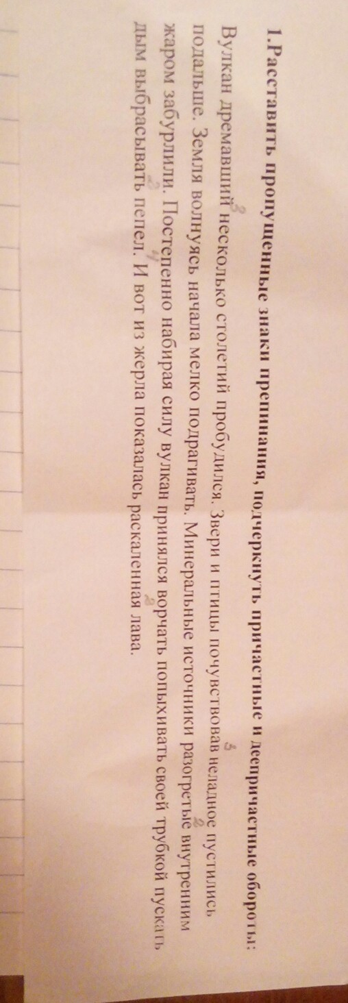 Задание под цифрой 1.Расставь пропущенные знаки препинания,подчеркнуть причастные и деепричастные обороты: