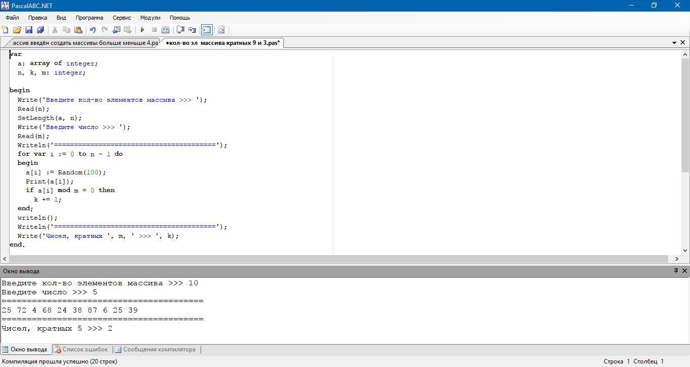 Найти сумму элементов массива, кратных заданному числу. Использовать для заполнения массива датчик случайных чисел. Использовать клавиатурный ввод для заданного числа. Распечатывать все введенные элементы массива.
