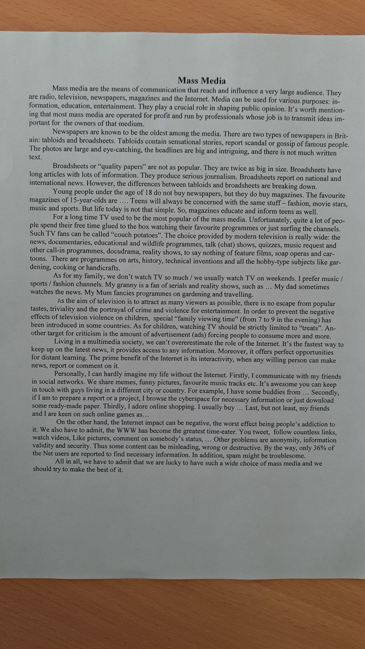 1 Are mass media the means of communication that reach and influence a very large audience?Общий