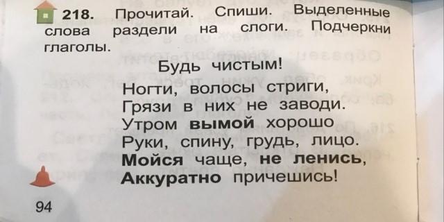 Прочитай спиши выделенные слова раздели на слоги подчеркни глаголы