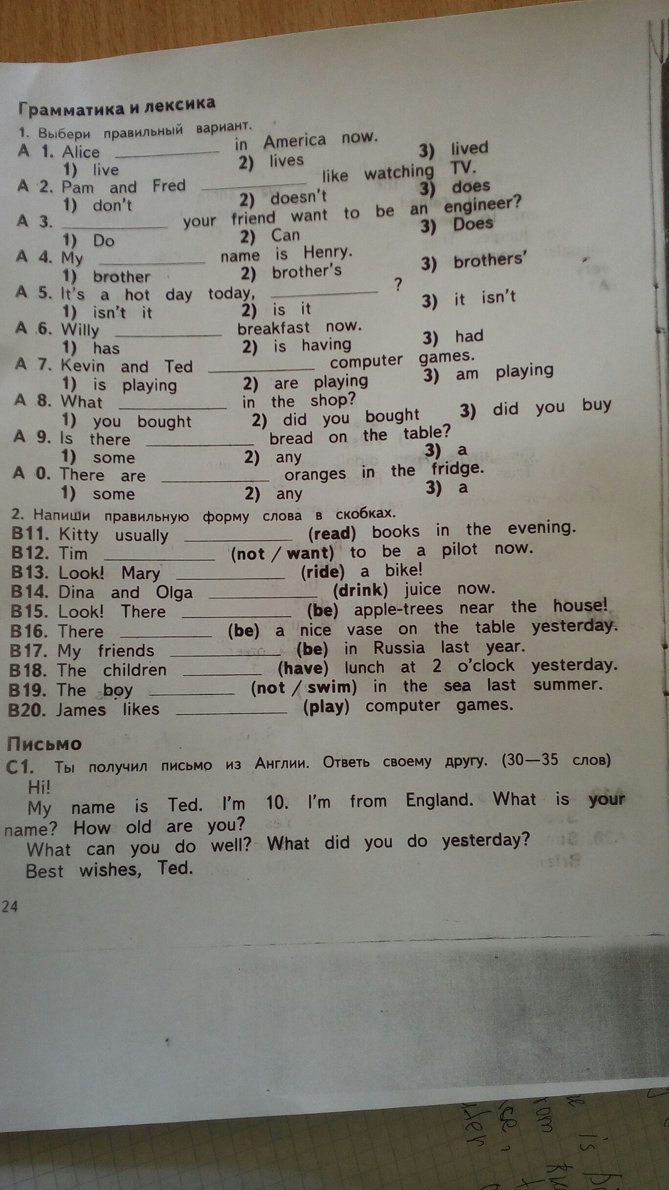 Hi! Thank you for your letter. My name is Kate. I am 10 years old. I'm from Russia. I can play the piano very well. I can also play volleyball. Yesterday I stayed at home and watched tv. My friend arrived and watched a cartoon on the computer in the evening. This cartoon called 'Lion King' and was very interesting. After waching a cartoon I went to bed.
