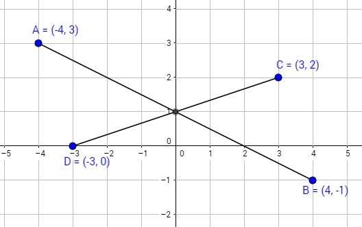 мне нужен именно рисунок Укажите координаты точек пересечения AB CD A (-4;3)B (4;-1) C(3;2) D(-3;0)
