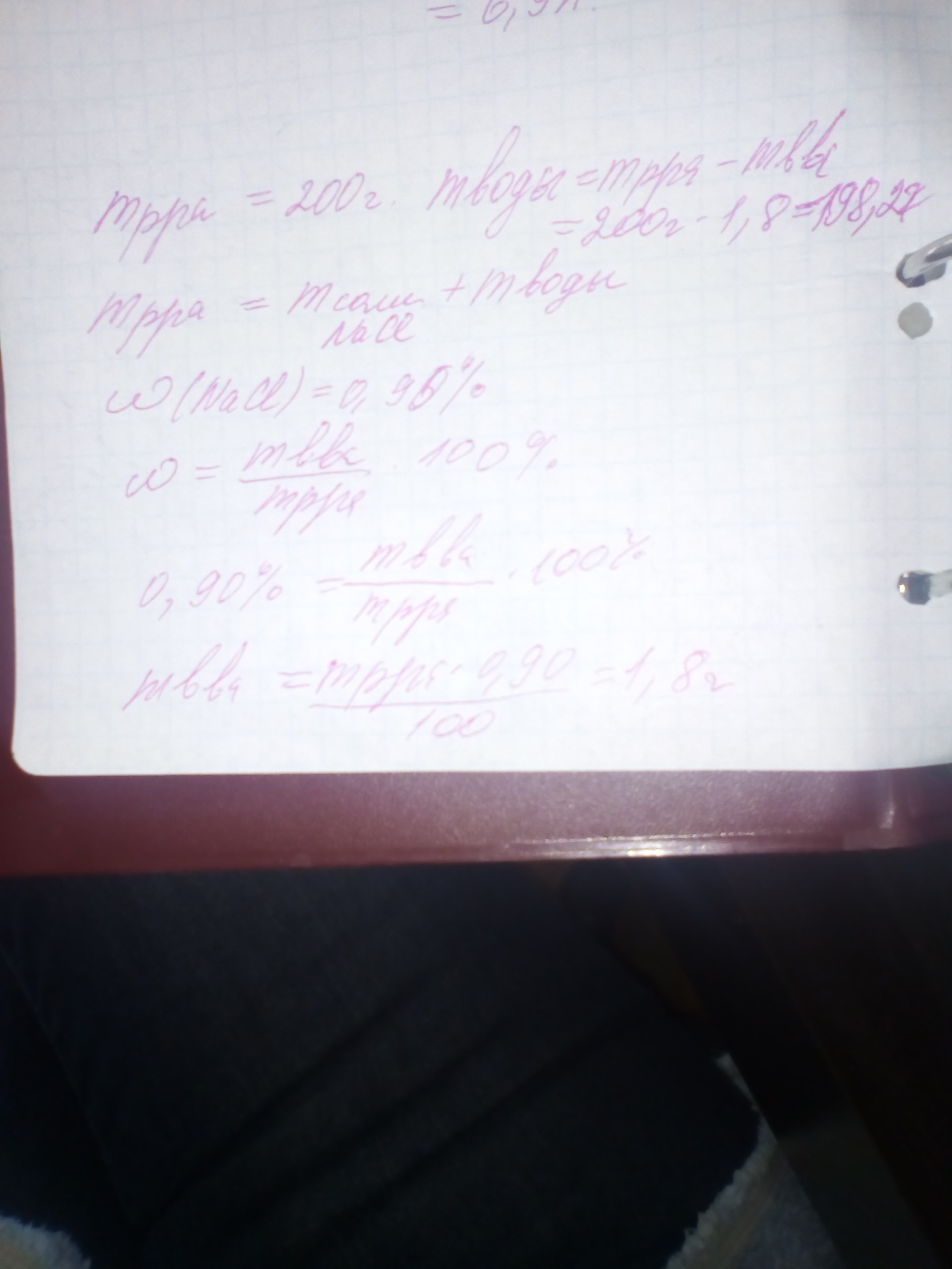 при некоторых заболеваниях в кровь вводят 0,90%-ный раствор хлорида натрия, называемый физиологическим раствором из-за близости по составу с плазмой крови. сколько граммов химически чистого хлорида натрия и дважды дистилированной воды требуется для приготовления 200г физиологического раствора
