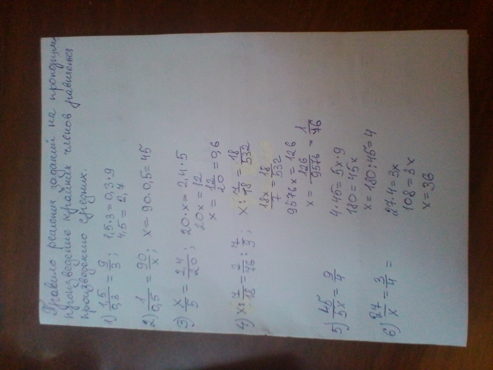 Найдите неизвестный член пропорции пожалуйста 1 пример 1,5 : 0,3=9:3 2 пример 1 0,5 = 90х 3 пример х5=2,420 4 пример х:718=276:79 5 пример 27х=34 6 пример 45:5х=9:4 7 пример 3 целых 34: 1 целую 18=2 целых 13: р 8 пример1751=х6 Найдите произведение крайних членов пропорции (27: 3 целых=46:14 целых)