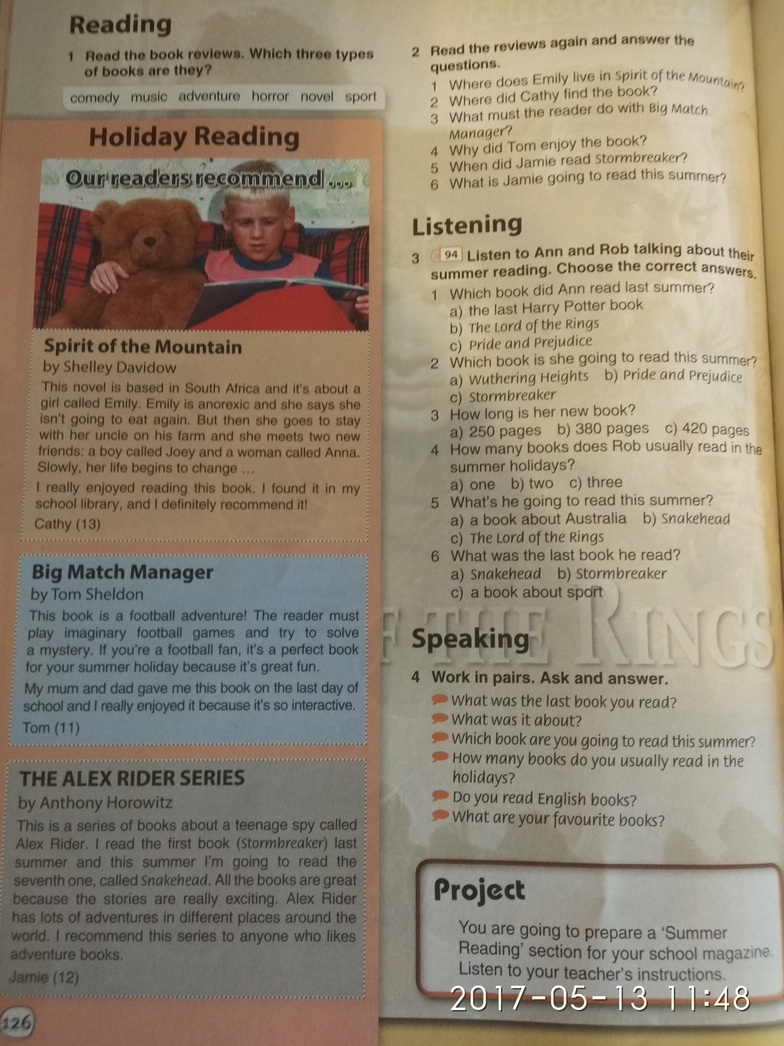 5.Jamie read the first book (Stormbreaker) last summer.