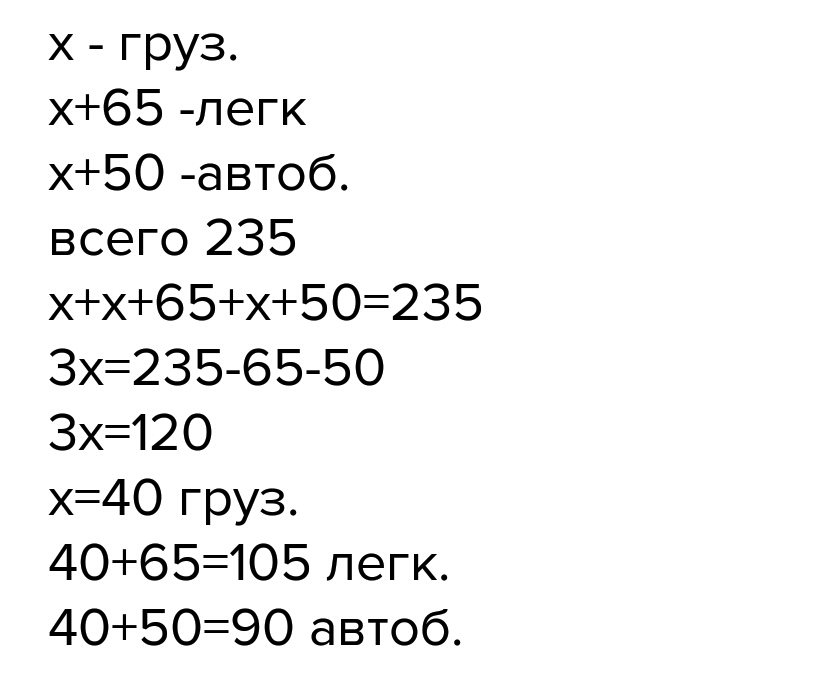 40-36=4(осталось), а 36-грузовых