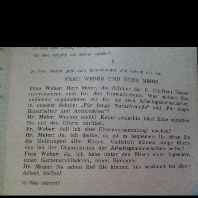 Госпожа Вебер: господин Майер , ученики пятого класса интересуются защитой окружающей среды. что вы думаете, возможно организуем мы для них два общества( объединения) в нашей школе : " Для юных друзей природы" и " Для юных строителей и архитекторов".