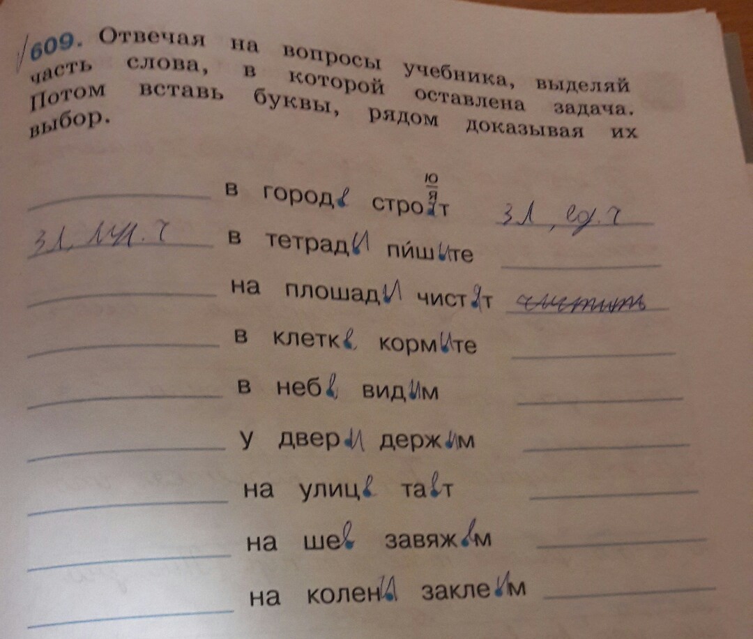 Отвечая на вопросы учебника , выделяй часть слова , в которой оставлена задача . Потом вставь буквы , рядом доказывая их выбор .