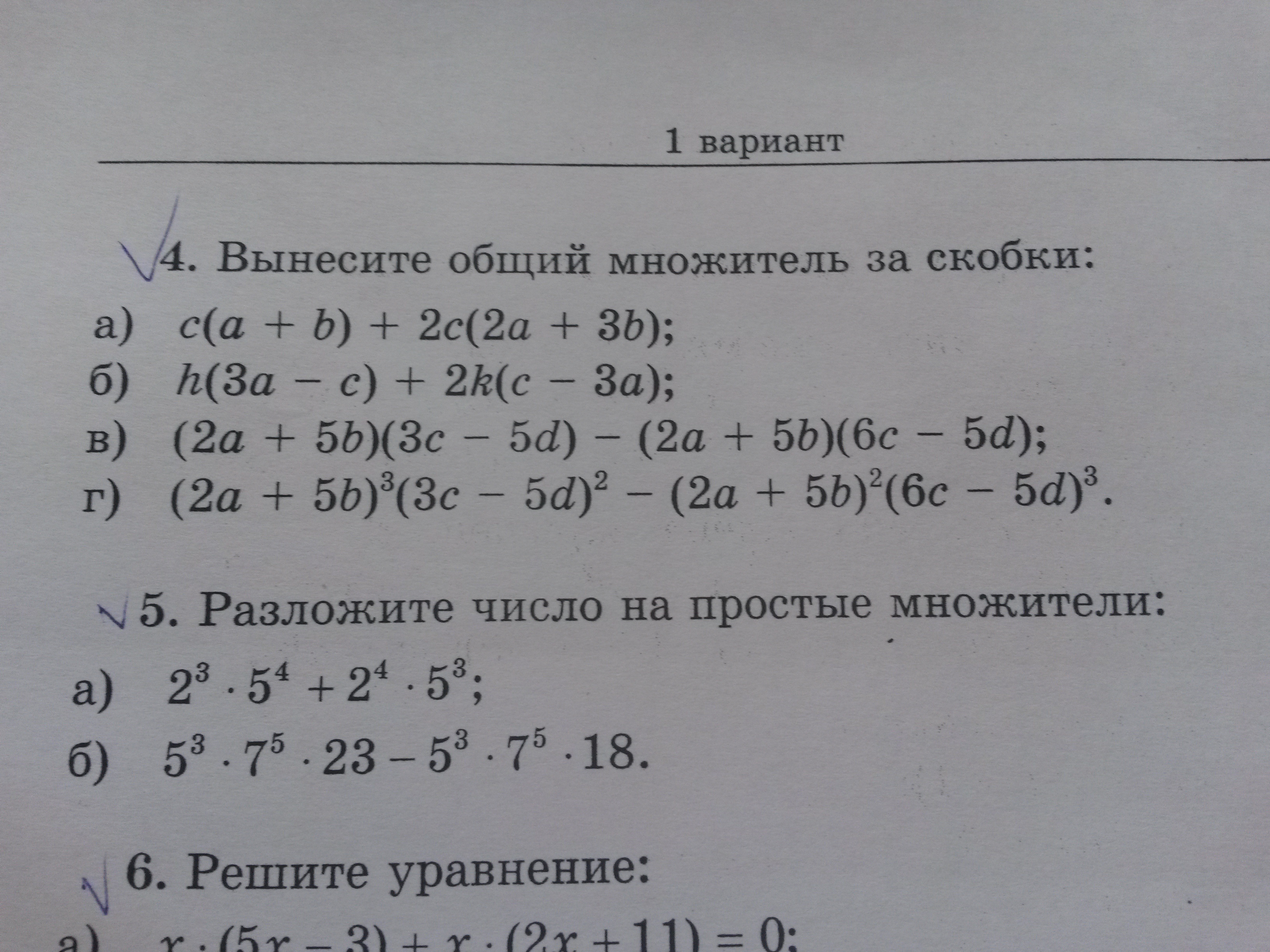 г) (2а+5b)³(3c-5d)²-(2a+5b)²(6c-5d)³ = (2a+5b)²((2a+5b)(3c-5d)²-(6c-5d)³ )