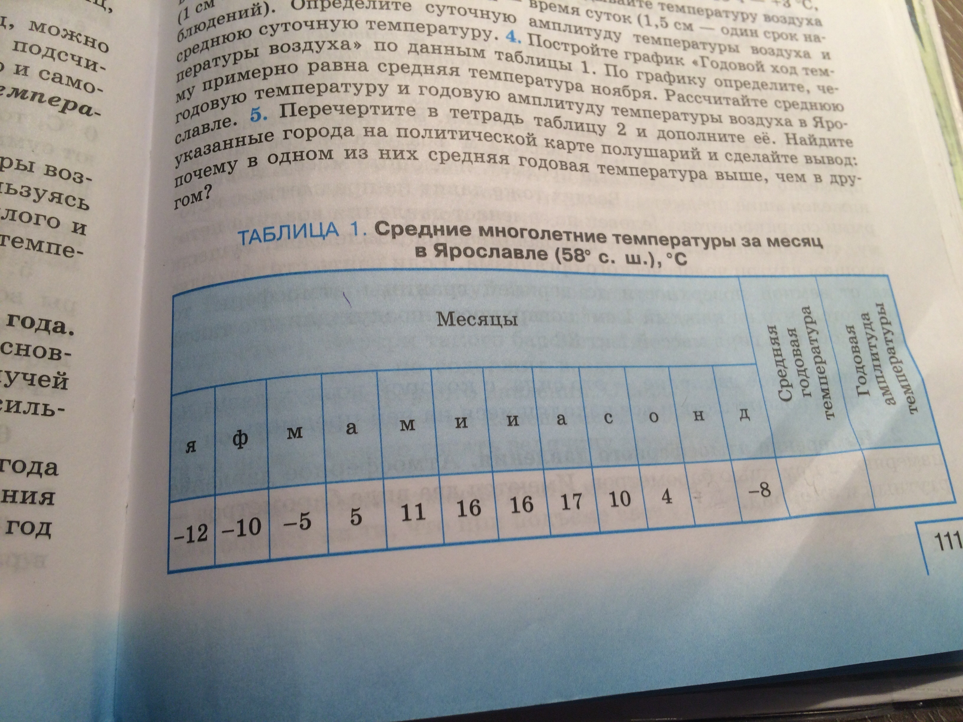 Помогите пожалуста "Средние многолетние температуры за месяц в Ярославле (58с.ш ),С "