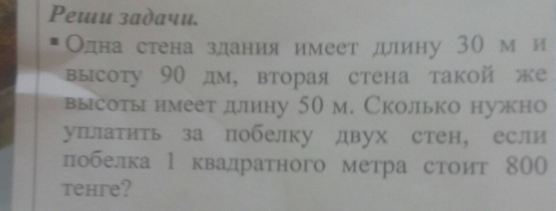 4) 720 × 800= 576 000 (тенге) стоимость побелки двух стен.