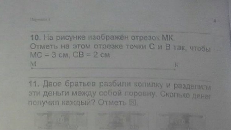 На рисунке изображён отрезок МК. Отметь на этом отрезке точки С и В так, чтобы МС=3 см СВ = 2см