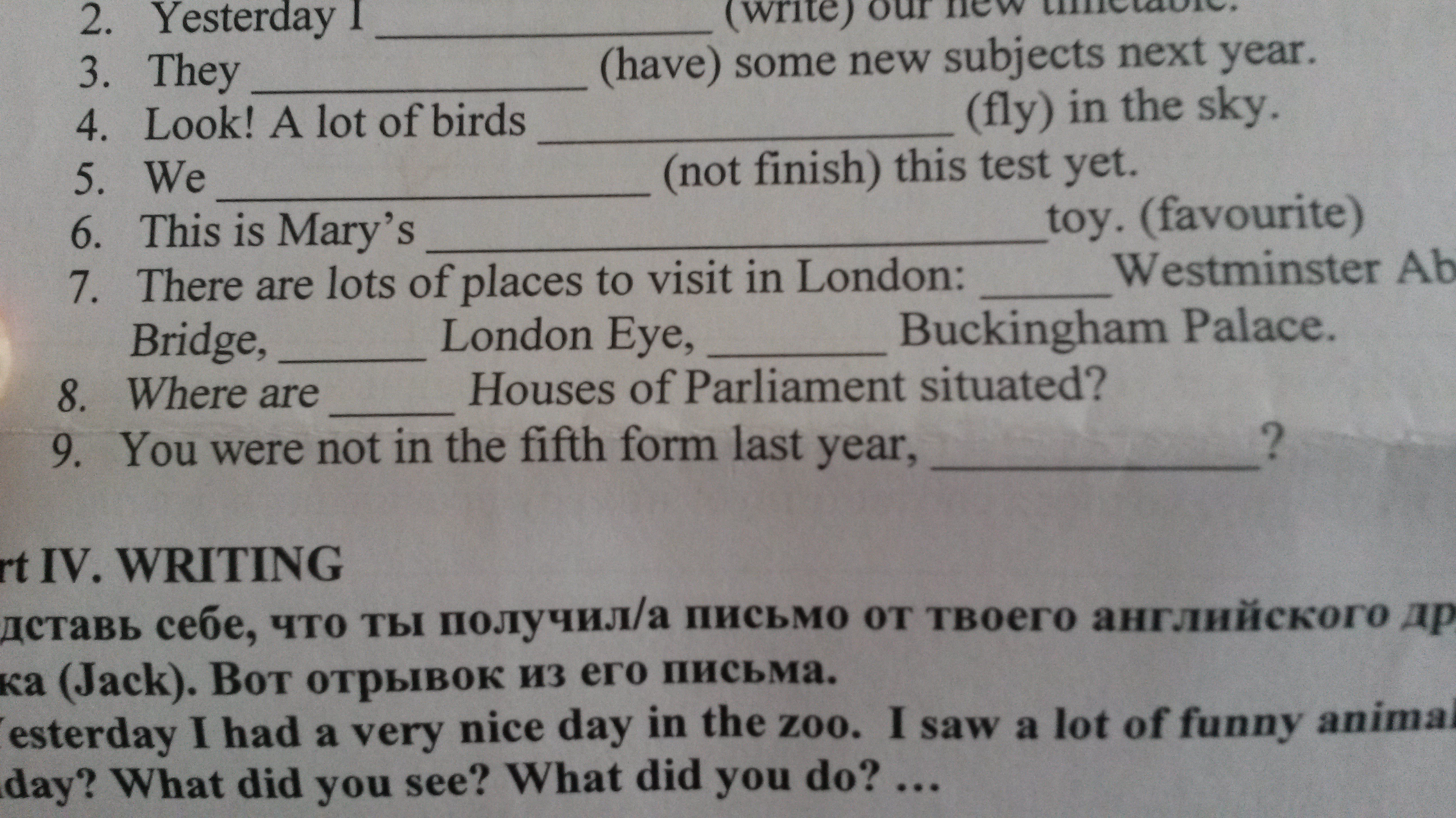Speak, will have, have not finished, favourite, were you?