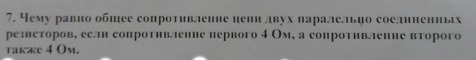 При параллельном соединении есть формула 1/R=1/R1+1/R2 Получается 1/R=1/4+1/4 1/R=1/8 R=8 Ответ 8 общее сопротивление. Выбирай ответ, как лучший) Удачи