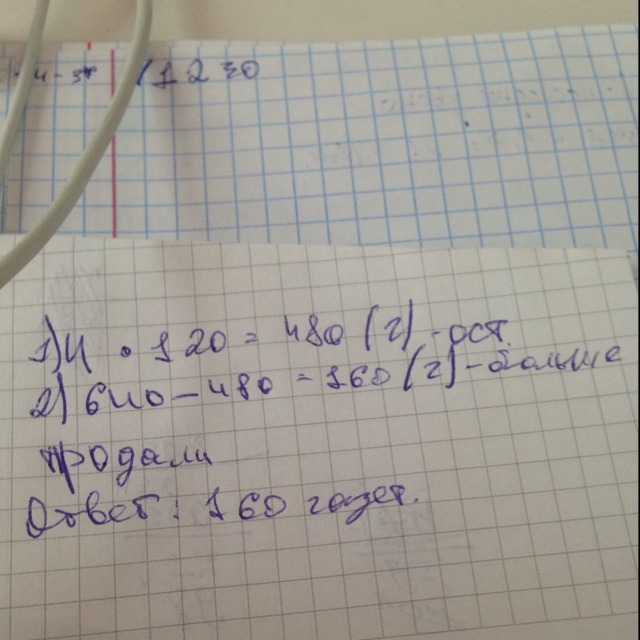 В киоске продали 640 газет, после чего там осталось 4 упаковки по 120 газет. На сколько больше газет продали, чем осталось?