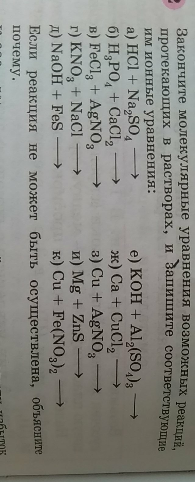 Закончите молекулярные уравнения возможных реакций, протекающих в растворах, и запишите соответвующие им ионные уравнения
