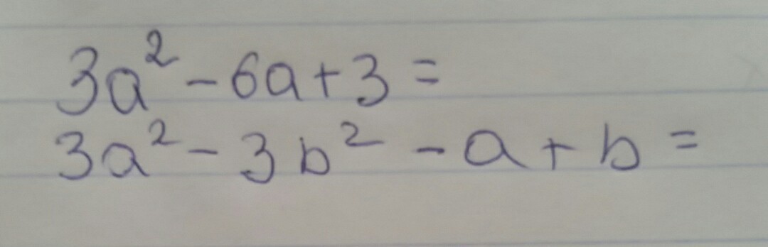 3акв - 3вкв - а + в = 3(акв - вкв) - а + в = 3(а - в)(а + в) - (а - в) = (а - в)(3(а + в) -1)