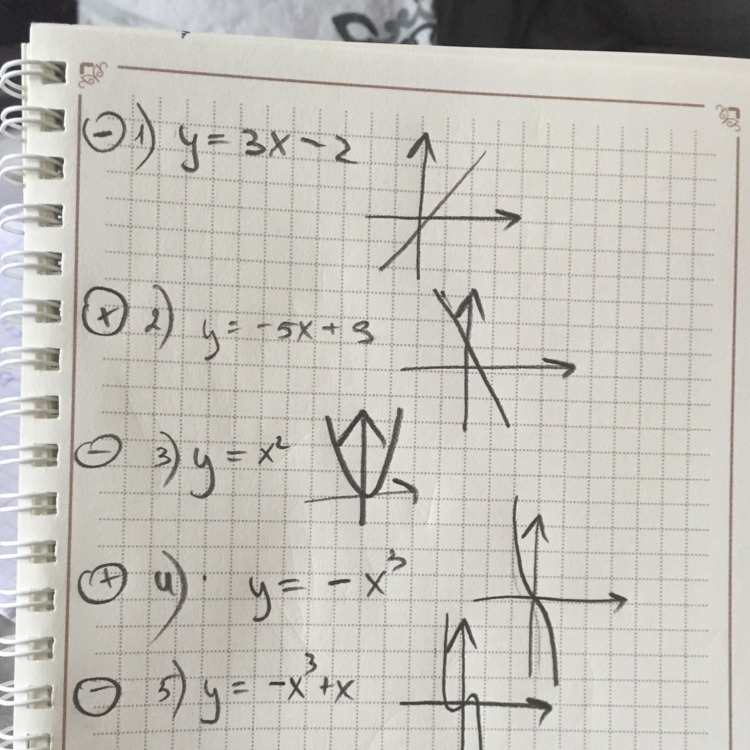 какие из данных функций убывают на всей области определения у=3х-2 , у=-5х+9 , у=х^2 , y=-x^3 , y=-x^3+x