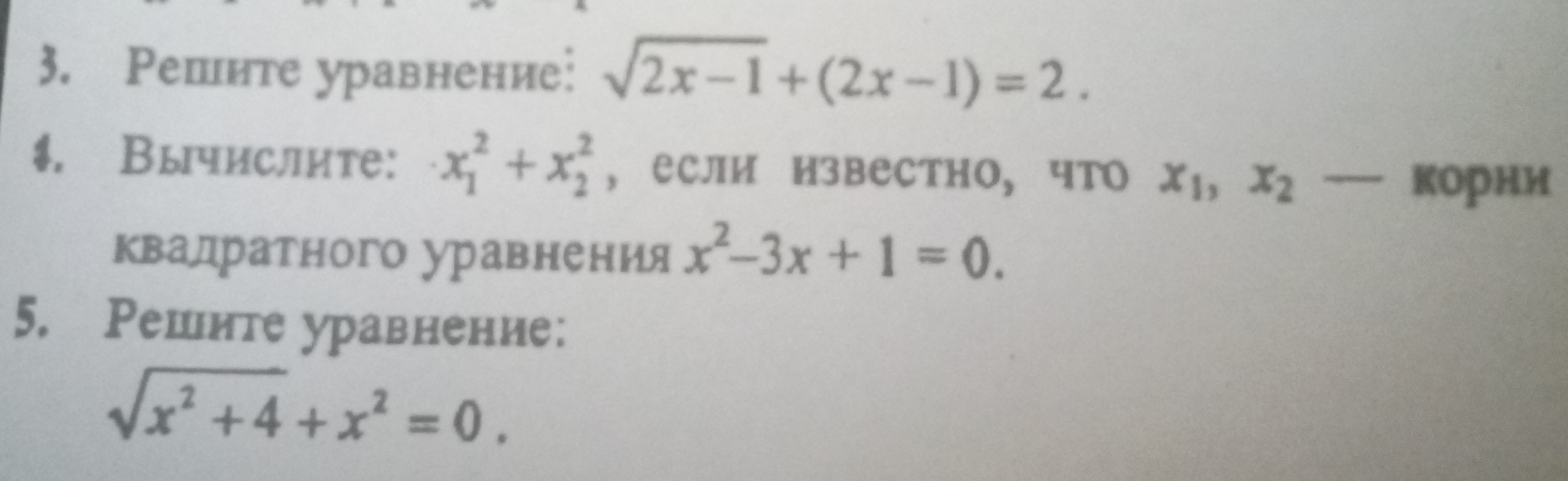 по т.Виета: (x1) + (x2) = 3 и (x1) * (x2) = 1