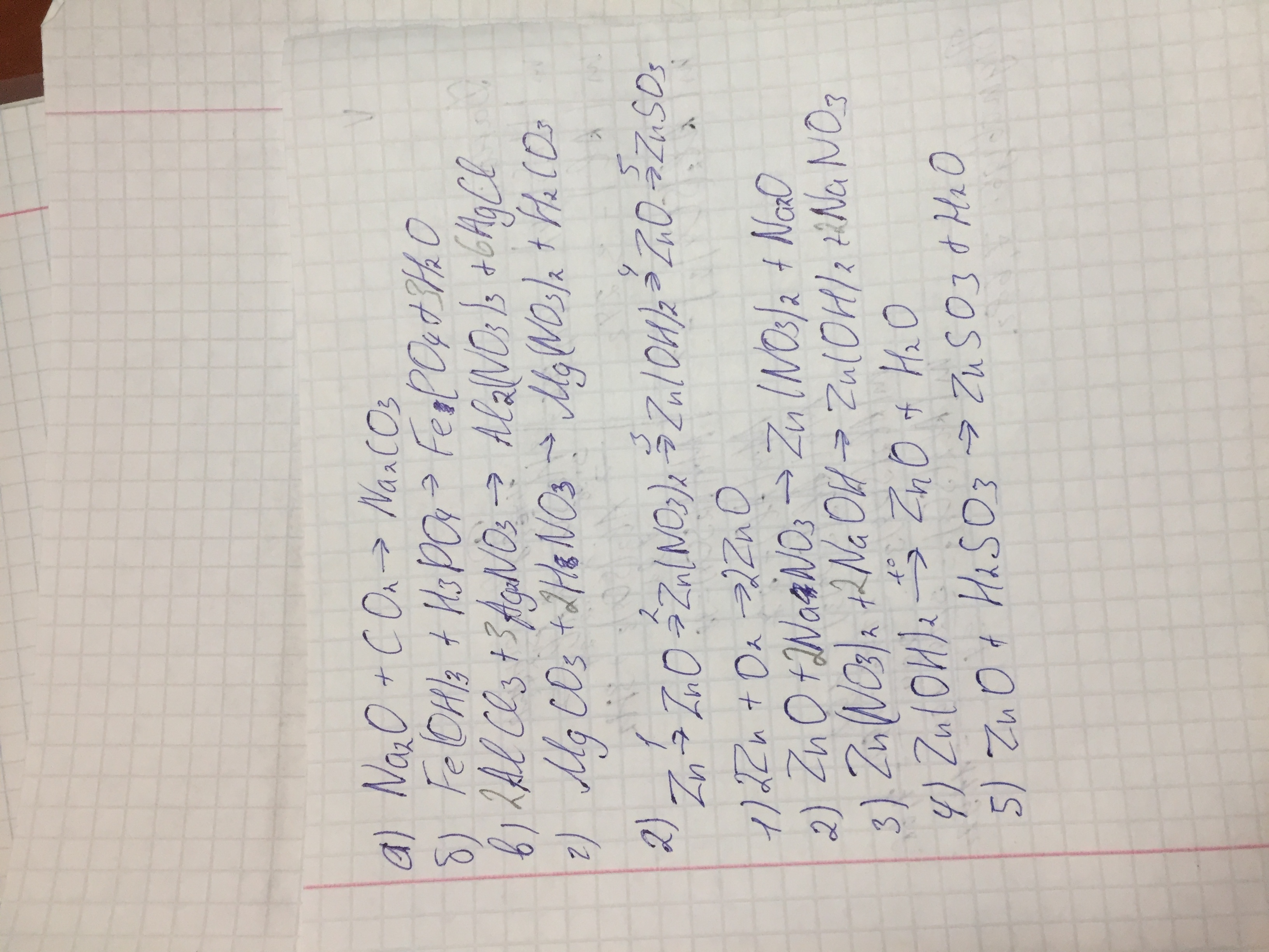 Zn➡️ ZnO➡️ Zn(NO3)2➡️Zn(OH)2➡️ ZnO➡️ ZnSO3