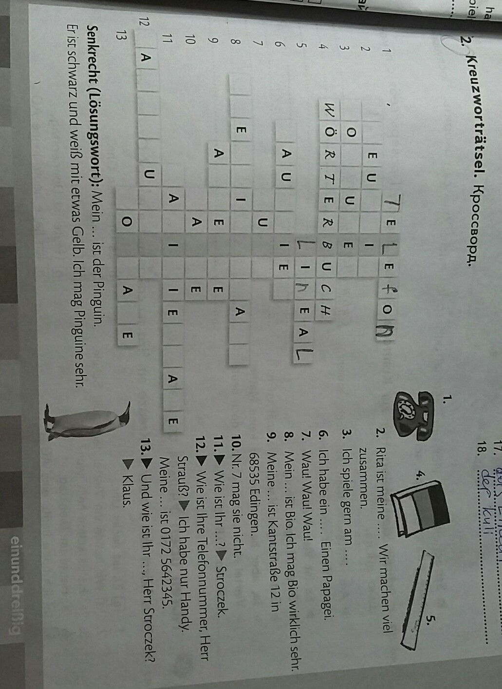 Ответ по вертикали- Lieblingstier любимое животное