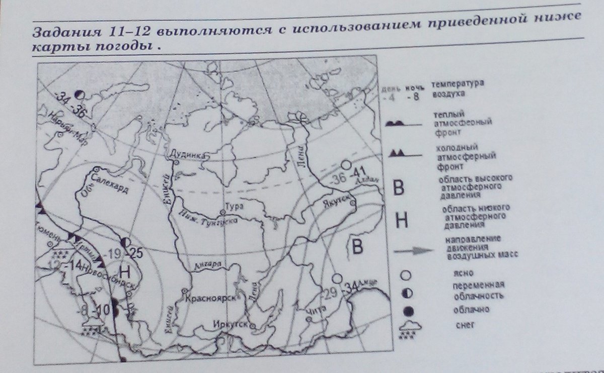 Карта погоды составлена на 21 января. В каком из перечисленных