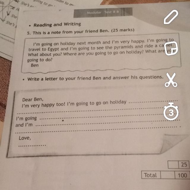 Im very happy too! Im going to go on holiday to London! It's in UK and people living there speak English. Im going to go to Big Ben and I'll go to Holland park where Kyoto park is and I'm so excited about it because I've never been to London! Love, ... (Там где ... должно быть имя(да я капитан очевидность))