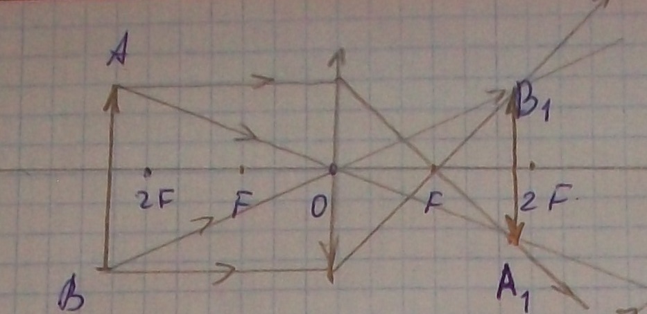 Если d> 2F, то изображение действительное, перевёрнутое, уменьшенное и находится на расстоянии F<f<2F